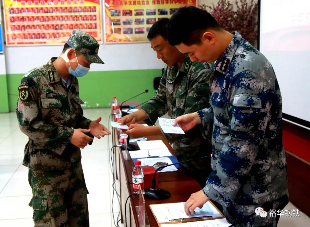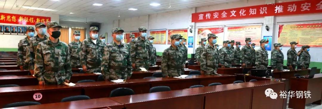 7月3日上午,邯鄲市民兵應急營在冀南鋼鐵集團召開了2020年民兵應急營點驗大會,邯鄲市民兵應急營營長范濤,邯鄲市軍分區政治處領導,邯鄲市民兵訓練基地領導,公司黨委委員、工會副主席孫紅明,安全部副部長李海軍及全體民兵參會。